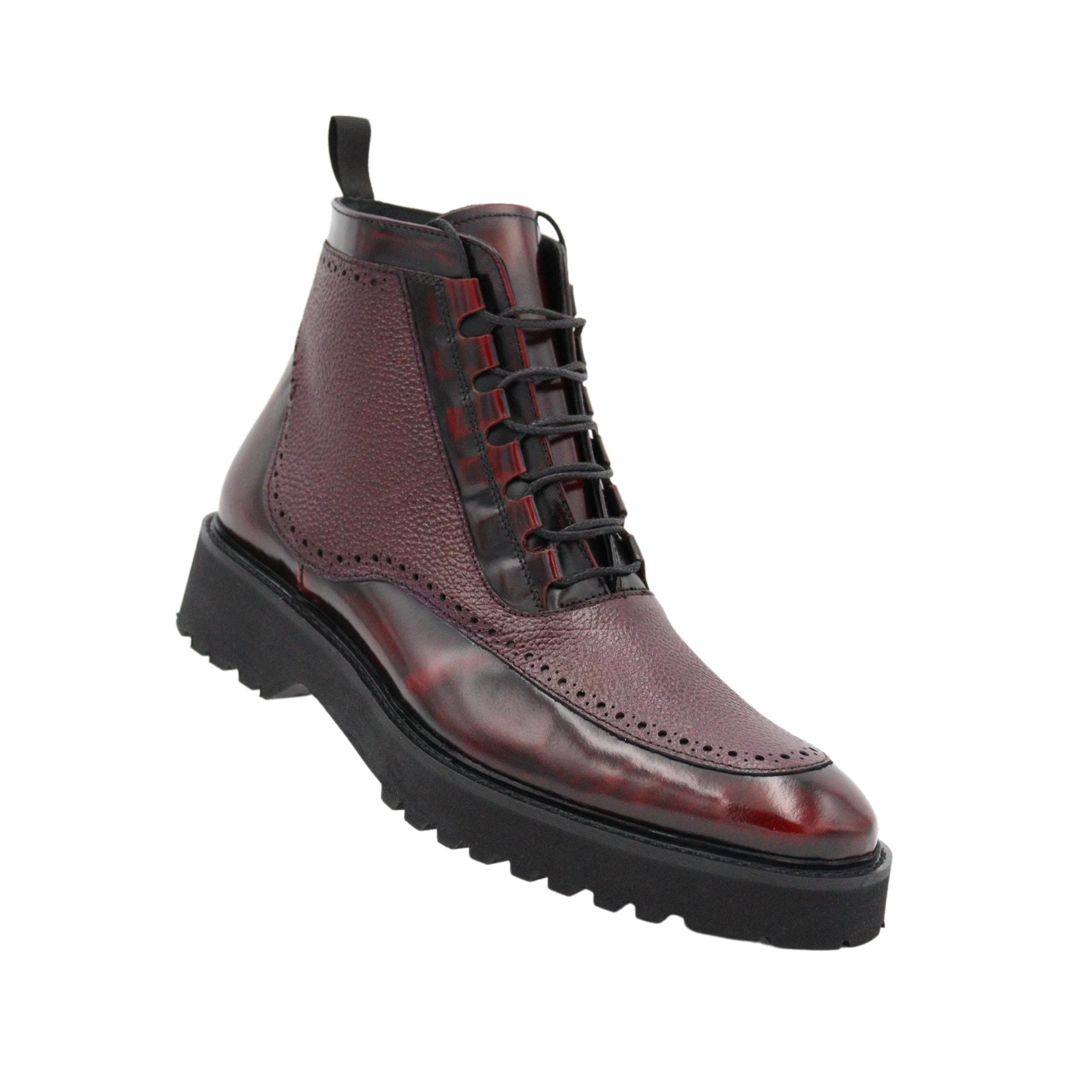 Piel Camaleón Vino con Aplicación Flotter Vino, Forro Flor Cerdo y Suela de Cuero.