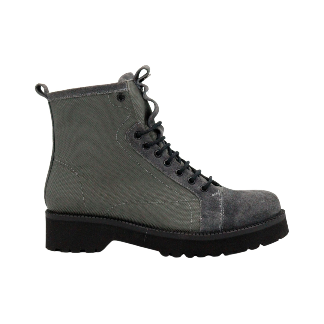 Gamuza Gris y Lona Gris, Forro Flor Cerdo y Suela Ultra Ligera.